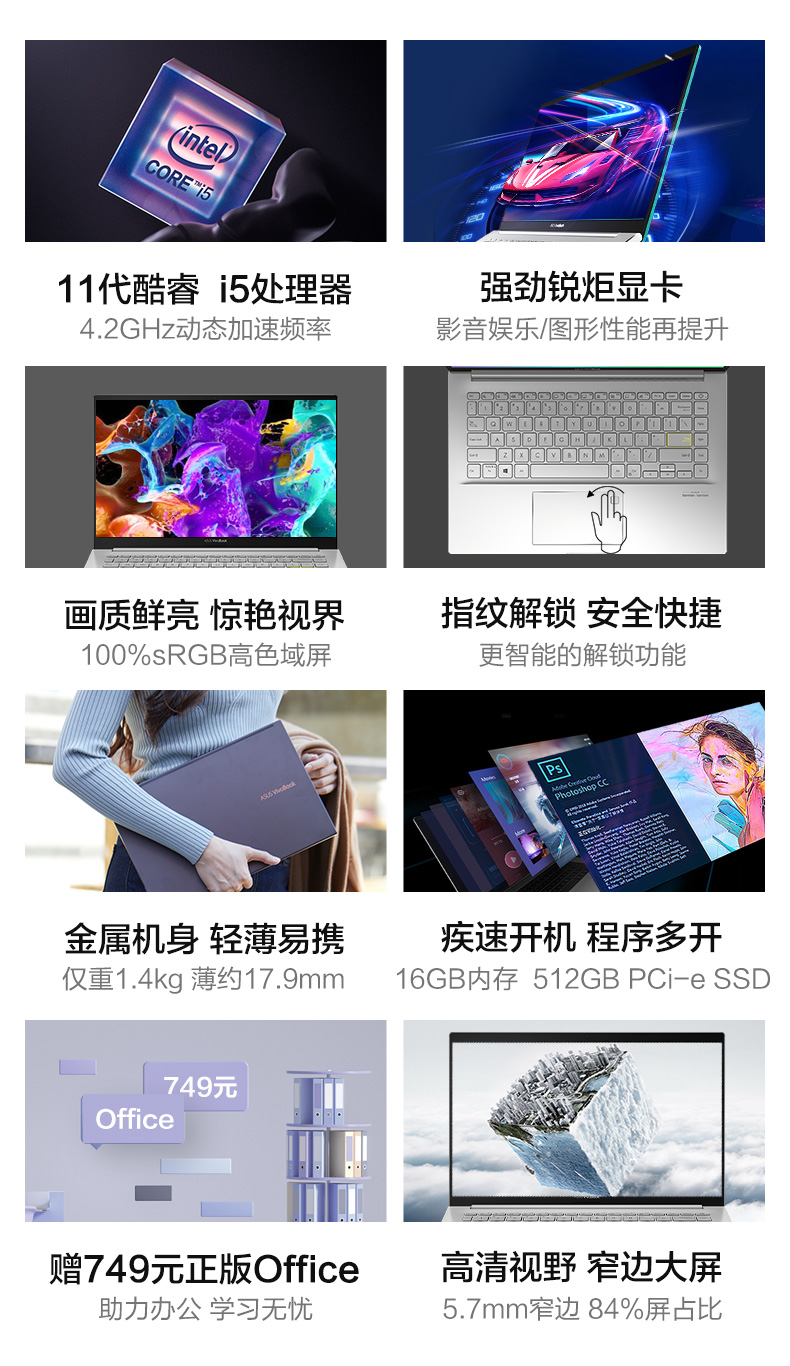 【11代新品】Asus华硕VivoBook15s 14X十一代英特尔酷睿i5轻薄便捷商务本办公学生笔记本